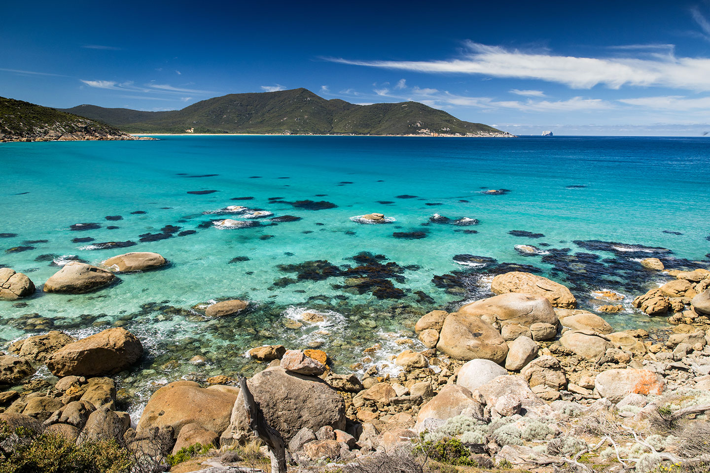 Wilsons Promontory National Park is an easy day-trip from Melbourne. This coastline is filled with some of the most beautiful bays in Australia, such as Whisky bay and Little Oberon Bay. Here, rocks covered in orange lichen compliment the clear turquoise waters for a picture-perfect scenery. To add to this paradise, you can catch some of the wildlife that roam this area, especially at sunset when wallabies spring into action and the wild bare-nosed wombats come out of their burrows to graze the open grasslands of the park.